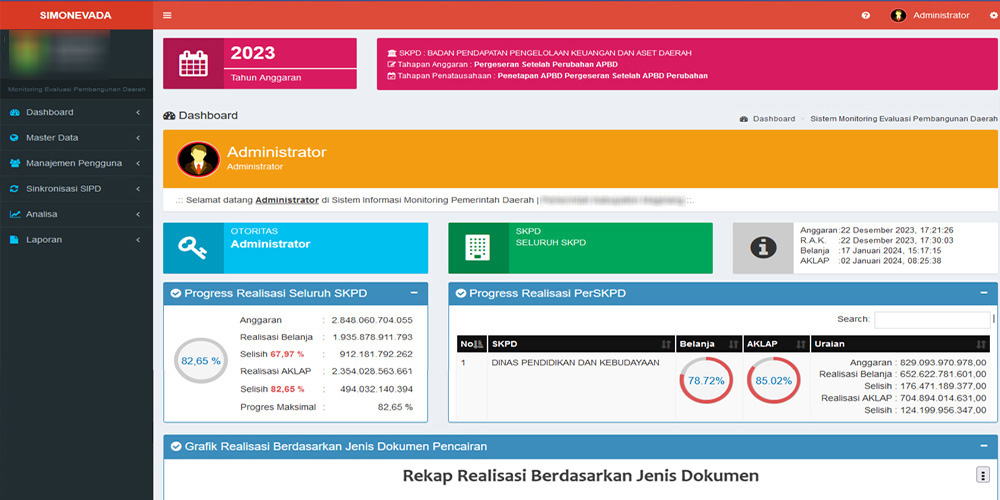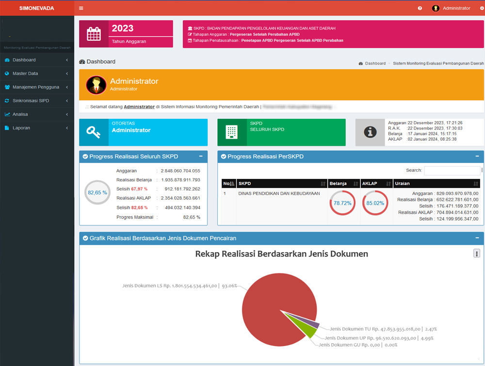 SIMONEVADA dibangun untuk mengoptimalkan penggunaan SIPD RI. Semua data Aplikasi SIMONEVADA diperoleh dari proses Integrasi Application Programming Interface (API) SIPD RI Kemendagri dengan satu proses integrasi yang mudah.